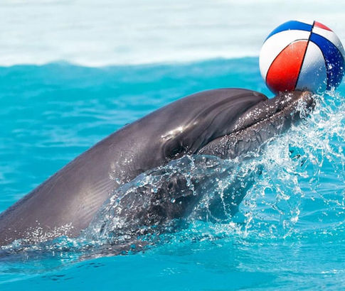 • A day with dolphins Water games and incredible intelligence demonstrations await